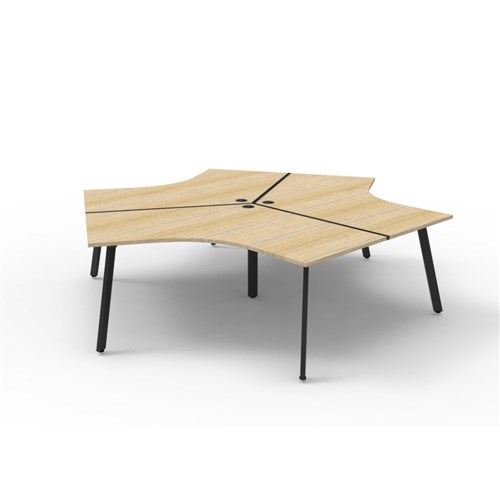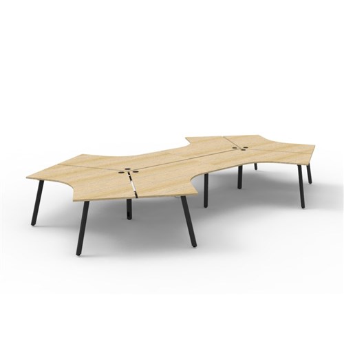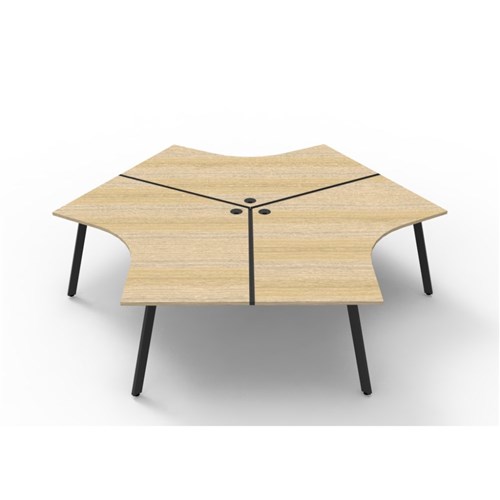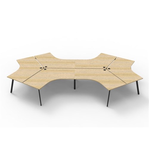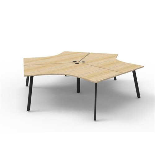 Overall Dimensions: 2866W x 2480D x 730mmH. Dimensions Per User: 1205W x 1205D x 730mmH. Natural oak worksurface with a 60 x 30mm powder coated black Eternity leg underframe. 1 x 80mm diameter cable entry hole. 30mm cable access void in between double sided users. Infill rail available at additional cost. Dual cross bar for added stability. E0 enviroboard melamine worksurface. Adjustable leveling feet. 5 Year Manufacturer's Warranty. Delivery, installation and assembly charges may apply to furniture. Please enquire to confirm.