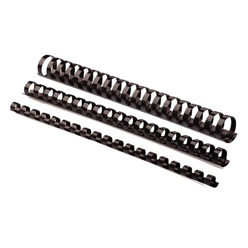 Gives a professional appearance to bound documents. Premium quality and durable black plastic binding comb. The most popular, economical and flexible method of binding 19mm comb. Suitable for any 21 loop plastic comb binding machine that can bind up to 150 sheets. Each comb has a spine length of 300 mm and a spine size of 19 mm.