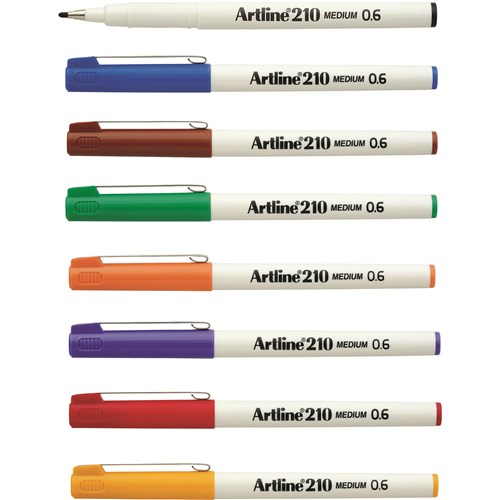 Artline 210 Fineliner Pen Medium 0.6mm 8 Assorted Colours Box Of 12