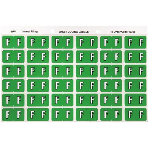 Avery Alphabet Coding Label F Side Tab 25x38mm Light Green Pack Of 180