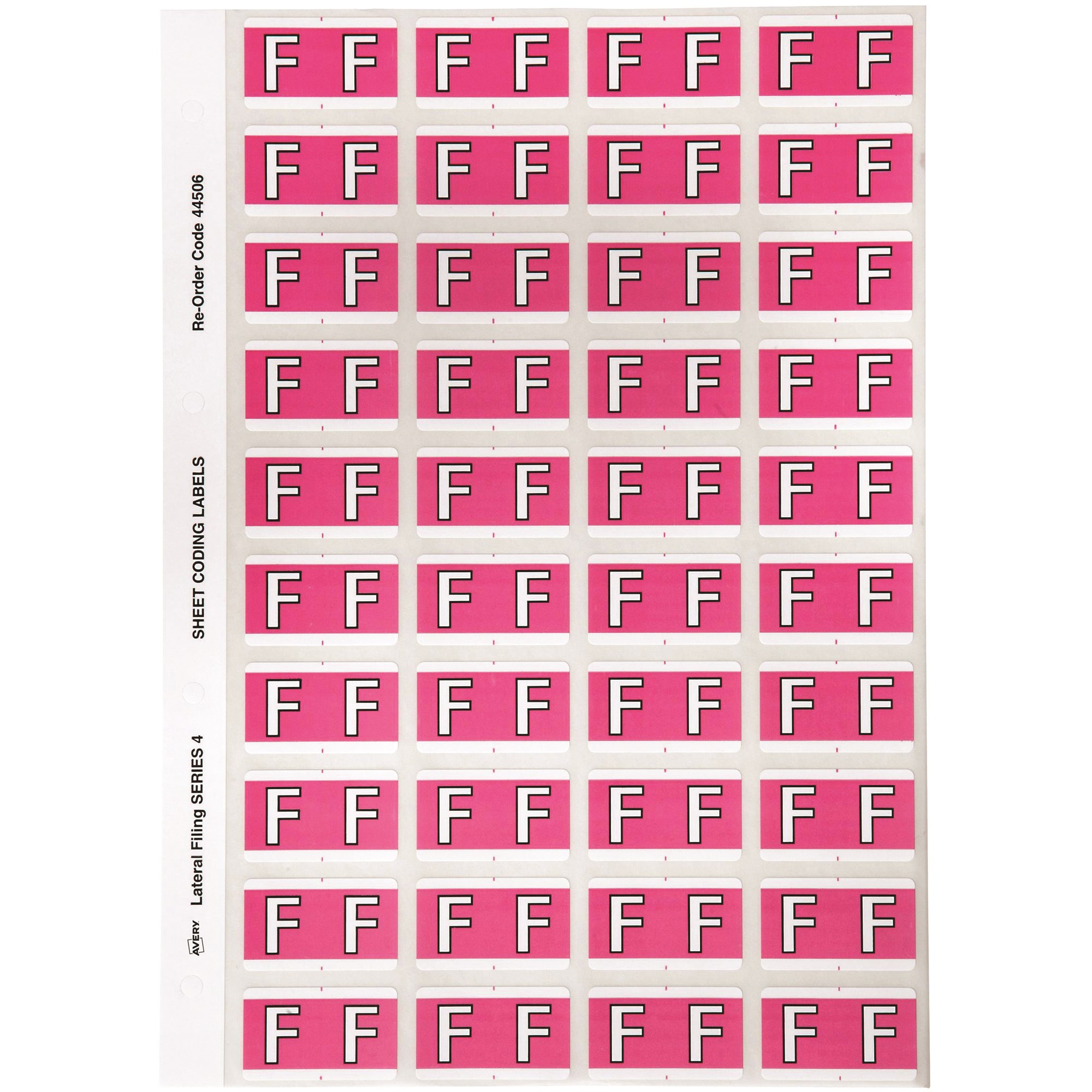 Avery Alphabet Coding Label F Side Tab 25x42mm Pink Pack Of 240