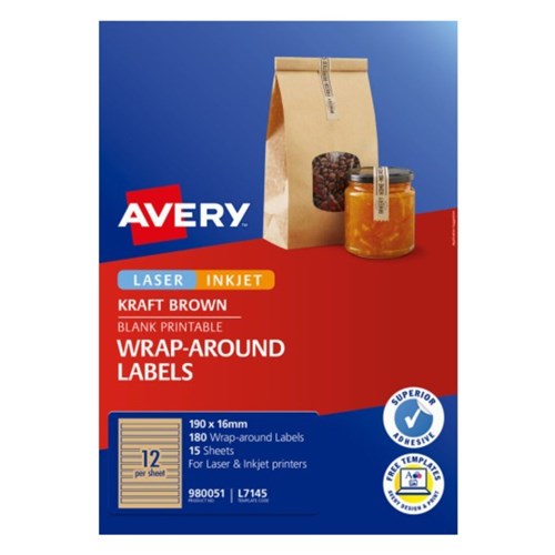 Avery Blank Printable Labels L7145 190 x 16mm Wrap Around Kraft Brown 12UP 180 Labels