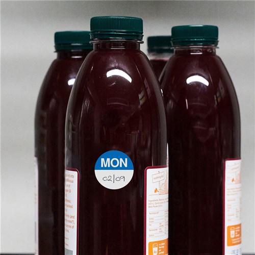 Visually identifies discard date of prepared food. Space to write the date on the label. Ideal for commercial refrigeration and food storage applications. Temperature -5 to +65C. Removable adhesive adheres to a variety of surfaces and removes easily.