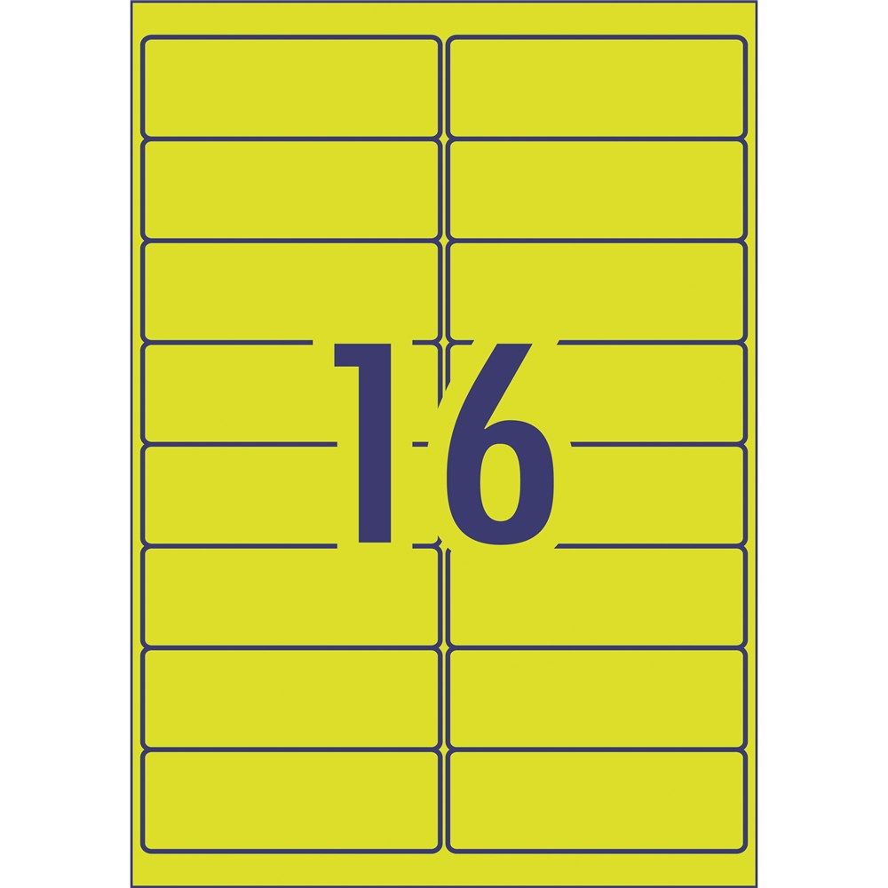 Ideal for labelling products, packaging and marking documents and files for urgent attention. Fluoro coloured labels make your items highly visible and enable instant recognition. Guaranteed Jam Free™ print. Customise your labels with Avery Design and Print, available at averyproducts.com.au/print. TrueBlock® technology, a sliver backing that covers up what's underneath. FSC certified labels made with paper from well-managed forests. Made in Australia. Size: 99.1x34mm 400 labels, 25 sheets. 16 labels per sheet (16UP).