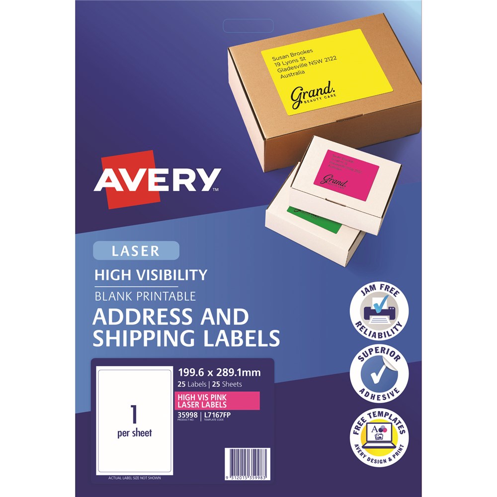 Avery High Visibility Shipping Laser Labels Pink L7167FP 199.6x289.1mm 1UP 25 Labels