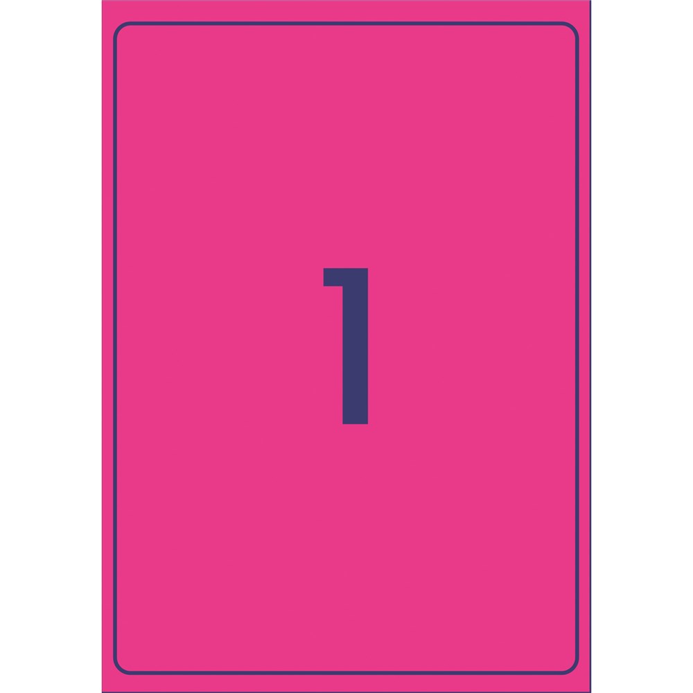 Ideal for labelling products, packaging and marking documents and files for urgent attention. Fluoro coloured labels make your items highly visible and enable instant recognition. Guaranteed Jam Free™ print. Customise your labels with Avery Design and Print, available at averyproducts.com.au/print. TrueBlock® technology, a sliver backing that covers up what's underneath. FSC certified labels made with paper from well-managed forests. Made in Australia. Size: 199.6x289.1mm 25 labels, 25 sheets. 1 label per sheet (1UP).