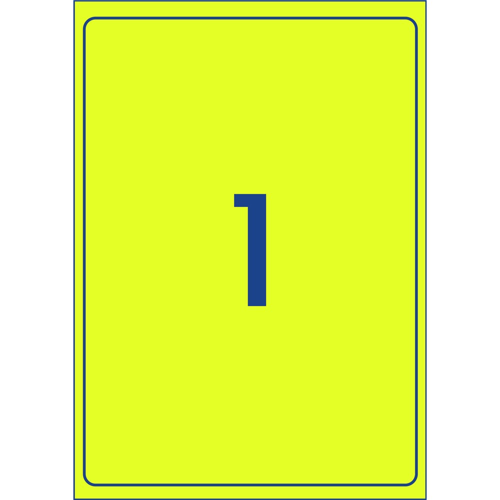 Ideal for labelling products, packaging and marking documents and files for urgent attention. Fluoro coloured labels make your items highly visible and enable instant recognition. Guaranteed Jam Free™ print. Customise your labels with Avery Design and Print, available at averyproducts.com.au/print. TrueBlock® technology, a sliver backing that covers up what's underneath. FSC certified labels made with paper from well-managed forests. Made in Australia. Size: 199.6x289.1mm 25 labels, 25 sheets. 1 label per sheet (1UP).