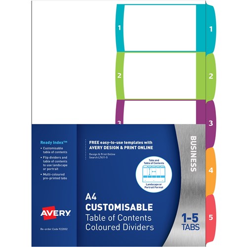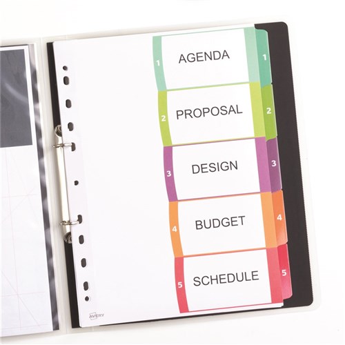 Avery L7411-5 Customisable Dividers A4 1-5 Index Tabs Bright Assorted