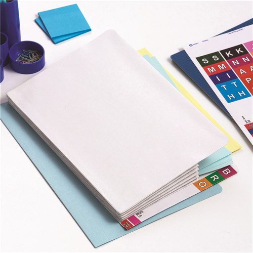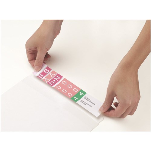 Create lateral files with brilliant colour coded labels in just a few easy steps. Easy-to-use with pre-designed templates. Specially designed to fit the tab area of lateral files. Alphabetic and numeric colour coding file titles and barcodes. Save time by printing on one label strip rather than applying individual tab labels. FSC certified labels made with paper from well-managed forests. Size: 220x42mm 400 labels, 100 sheets.