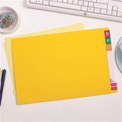 • Manufactured from strong weight board with a reinforced side tab on which you can label colour code and file title labels.