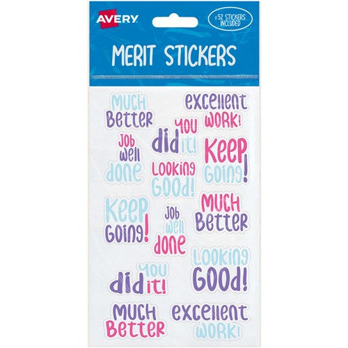 Avery Merit Stickers 13 Mixed Designs Assorted Colours 52 Stickers