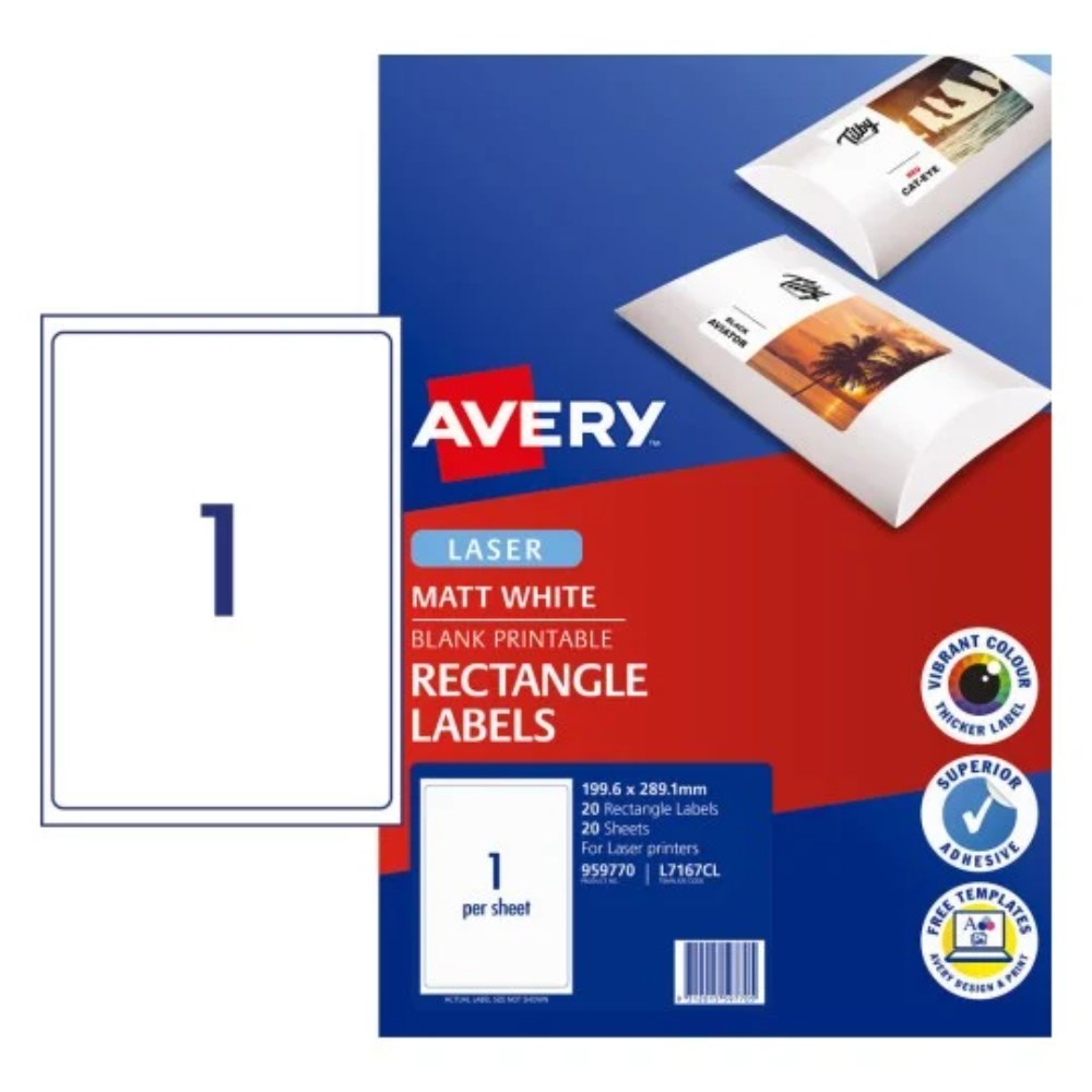 Avery Printable Labels L7167CL 199.6x289.1mm Rectangle Photo Matte White 1UP 20 Labels