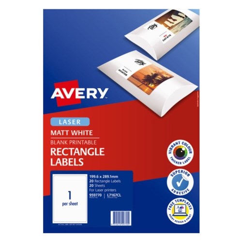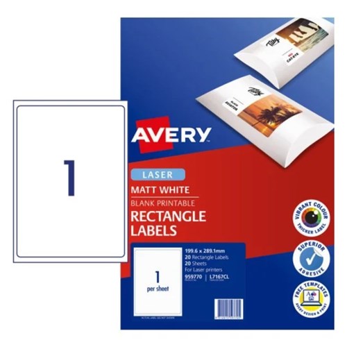 Avery Printable Labels L7167CL 199.6x289.1mm Rectangle Photo Matte White 1UP 20 Labels