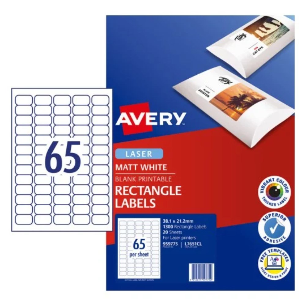 Avery Printable Labels L7651CL 38.1 x 21.2mm Rectangle Photo Matte White 65UP 1300 Labels