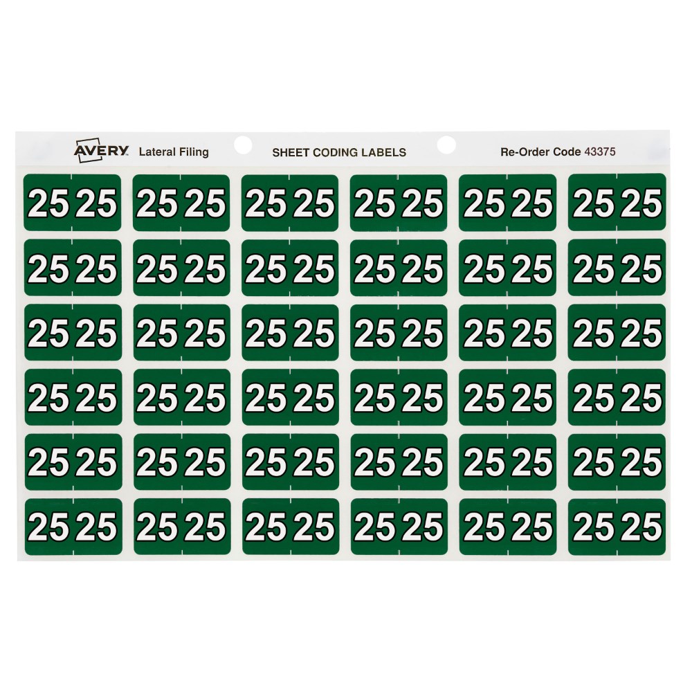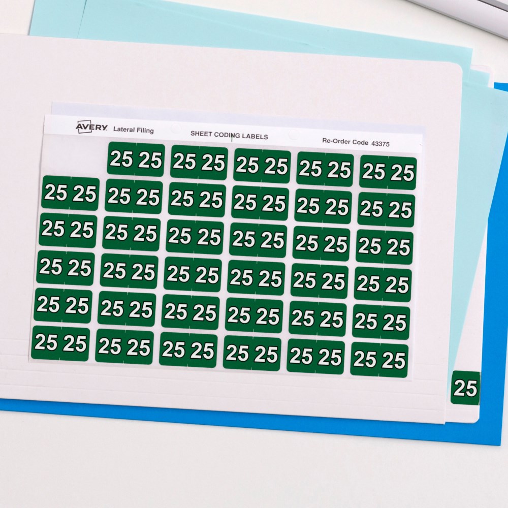 Avery Side Tab 25 Year Coding Labels 25 x 38mm Dark Green Pack Of 180