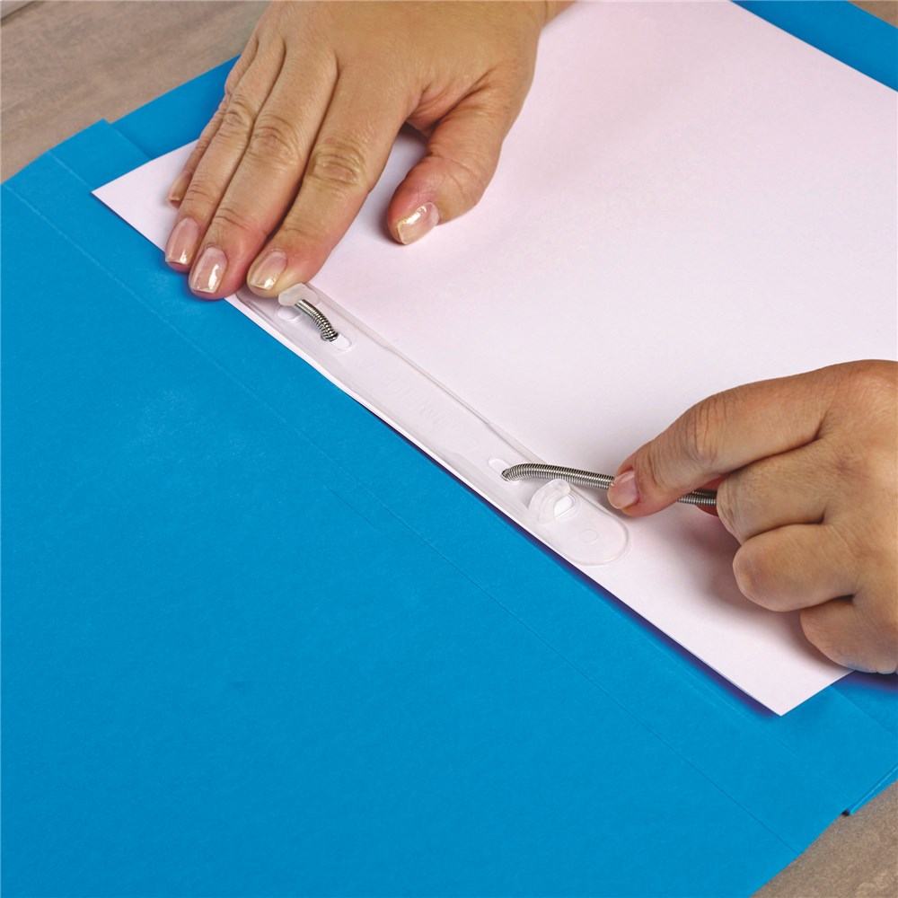 • Heavy weight file fitted with spiral spring coil fastener and pressure plate.