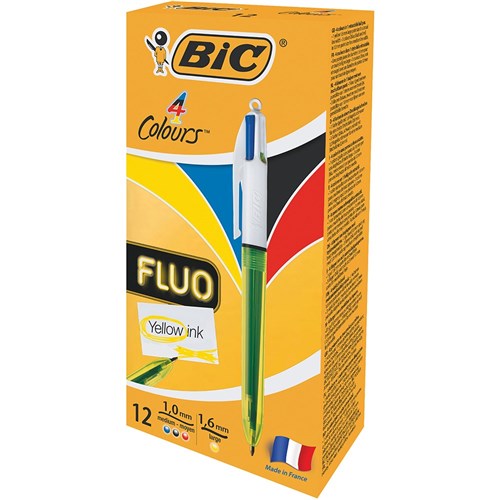 Bic 4 Colour Fluro Ballpoint Pen Retractable Medium 1mm Fluoro Colours Pack of 12