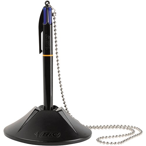 1.00mm medium ballpen. Blue ink cartridges allows writing up to 8000 metres. Stylish black barrel and base with a strong chain loop.