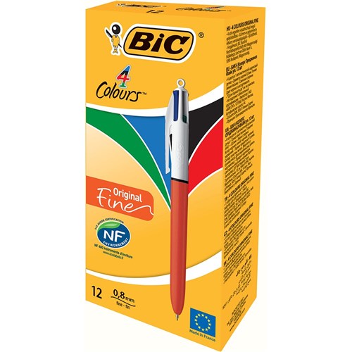 Bic 4 Colour Original Ballpoint Pen Retractable Fine 0.7mm Pack of 12