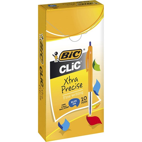 Bic Clic M10 Xtra Life Ballpoint Pen Retractable Fine 0.8mm Blue Pack of 10