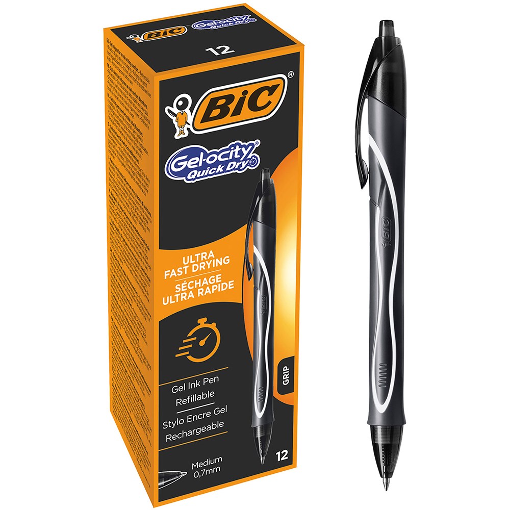 Bic Gelocity Gel Pen Retractable Medium 0.7mm Black Pack of 12
