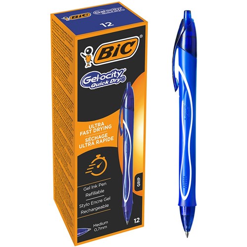 Bic Gelocity Gel Pen Retractable Medium 0.7mm Blue Pack of 12