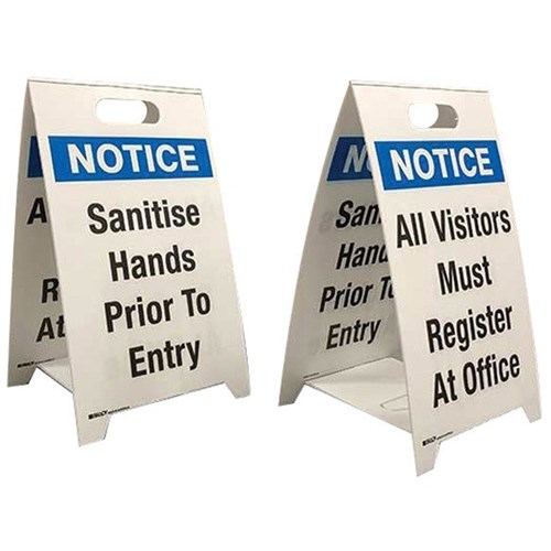 Wording: Sanitise Hands Prior To Entry/All Visitors Must Register At Office. Wording: Sanitise Hands Prior To Entry/All Visitors Must Register At Office Material: 3mm corrugated plastic. Size: 300W x 500mmH.