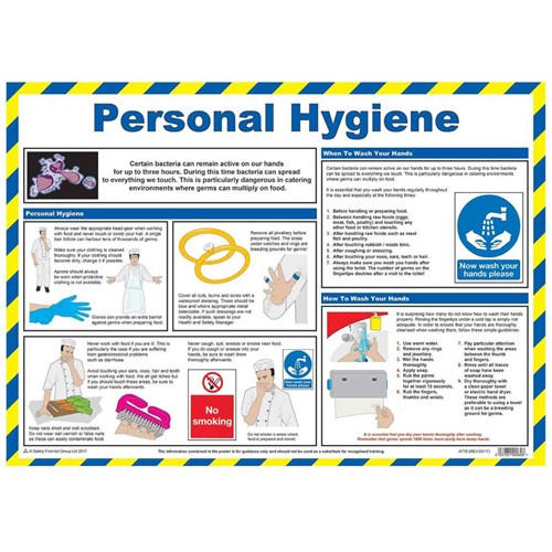 Help minimise the spread of COVID-19 in your facility with Brady's range of hygiene signs posters. Wording: Personal Hygiene . Material: Laminated Poster. Size:H420 X W590mm.