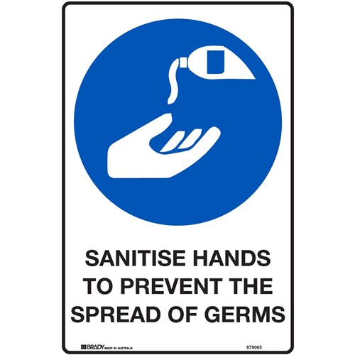Brady Mandatory Sign Sanitise Hands To Prevent The Spread Of Germs 180W x 250mmH Vinyl
