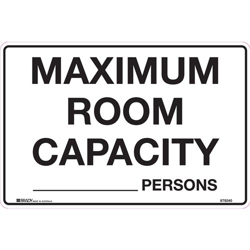 Brady Safety Sign Maximum Room Capacity - Persons Poly 300W x 225mmH White/Black