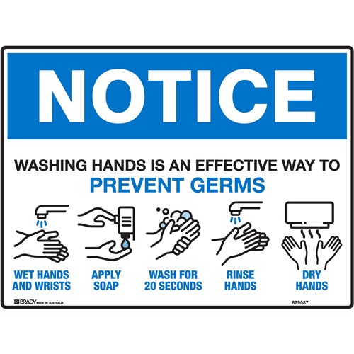Brady Safety Sign Notice Washing Hands Is An Effective H450xW600mm Corflute