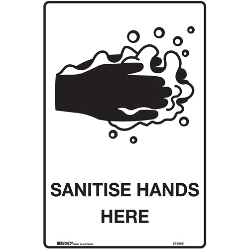 Brady Safety Sign Sanitise Hands Here (with Picto) H450xW300mm Polypropylene