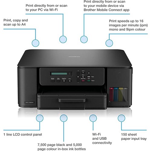 Brother DCP-T580DW Multifunction CoIour Inkjet Printer Black
