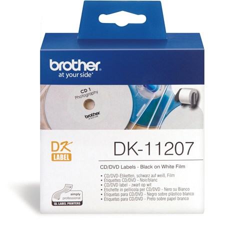 Brother DK-11207 Label Rolls 58mm Diameter CD/DVD Black on White Suits QL-Series Box 100