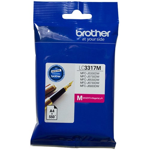 Compatible with Brother: MFC-J5330DW, MFC- J5730DW, MFC-J6530DW, MFC-J6730DW, MFC-J6930DW. Cartridge has an estimated page yield of 550 pages. This pack contains a single magenta ink cartridge.