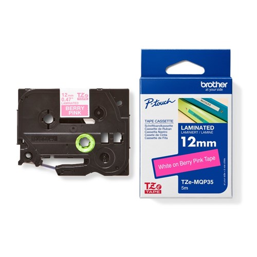 Brother TZE-MQP35 P-Touch Tape 12mmx5m White on Berry Pink