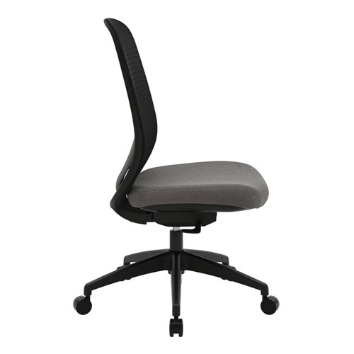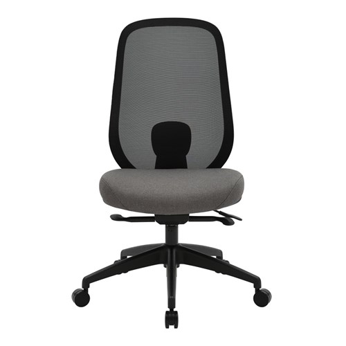 High Back Office Chair With Seat Slide. Black Frame Grey Fabric Seat Mesh Back. Black base. Weight Rating: 130kg. Indicated seat hours: 8+ hours. Seat Dimensions: 485W x 455D x 535mmH. Back Height: 565mm. Back Width: 485mm. Synchronised adjustable seat and back rest angle. Depth adjustable seat slide. Nylon base on castors. 600mm. FSC certified. GreenGuard Gold. Optional height and width adjustable armrests available. 10 Year Manufacturer's Warranty. Delivery, installation and assembly charges may apply to furniture. Please enquire to confirm.