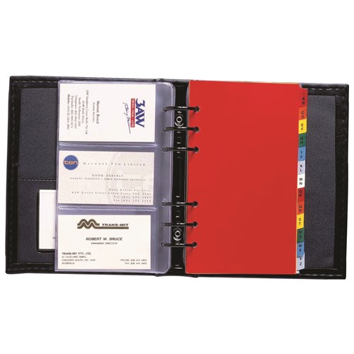 Debden Business Card Binder 148x190mm 6 Ring With Tabs Black