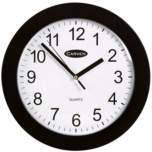 High quality analogue clock that can be wall mounted. Large, clear numbers and quality hands. White, round face and black rim. Requires 1xAA battery not included. Glass face.