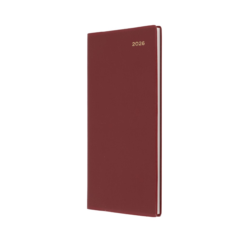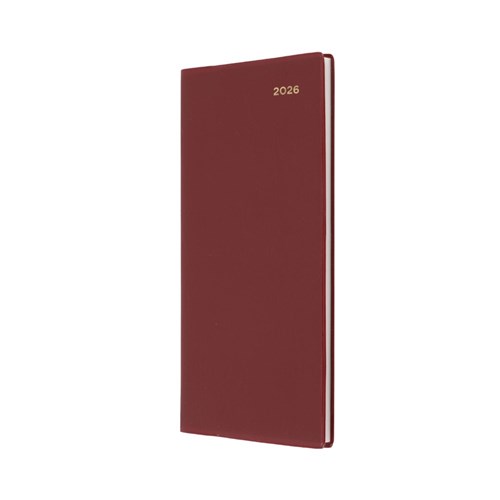 Bound in durable, welded PVC, the Belmont is available in black, burgundy and navy. Printed on white paper. 3 year calendars. Forward year planners. Calendar notes. Australian and New Zealand holidays. Appointment times 8am - 6pm hourly. Notes. Size: 176 x 88mm. FSC Certified.