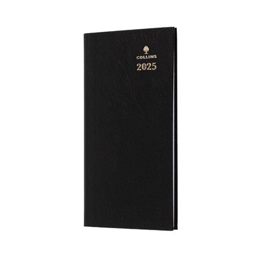 This sophisticated smooth leather-look diary comes complete with all of the features expected of a Collins diary, including crisp, easy-to-read graphics and a comprehensive information section. Australian and New Zealand Capital City Maps and Holidays. Appointment times from 8am - 6pm, hourly. 3 Year calendars. Current and Forward Year Planners. International holidays. International dialling. Staff leave planner. Addresses and notes. Size: 182x93mm.