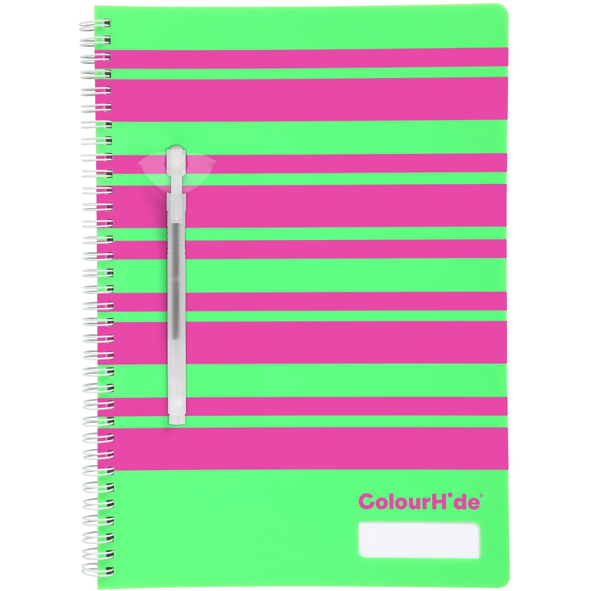 Say goodbye to boring sationery with Colourhide® notebooks. All notebooks have a vibrant and protective polypropylene cover, with easy rip out pages. The A4 range includes a pen holder on the cover, reusable ruler, and a 2-year calendar. The A5 note book includes a pen holder on the cover, reusable ruler, double-sided pocket, and a 2-year calendar. All Colourhide® notebooks are certified by the Forest Stewardship Council® (FSC® )