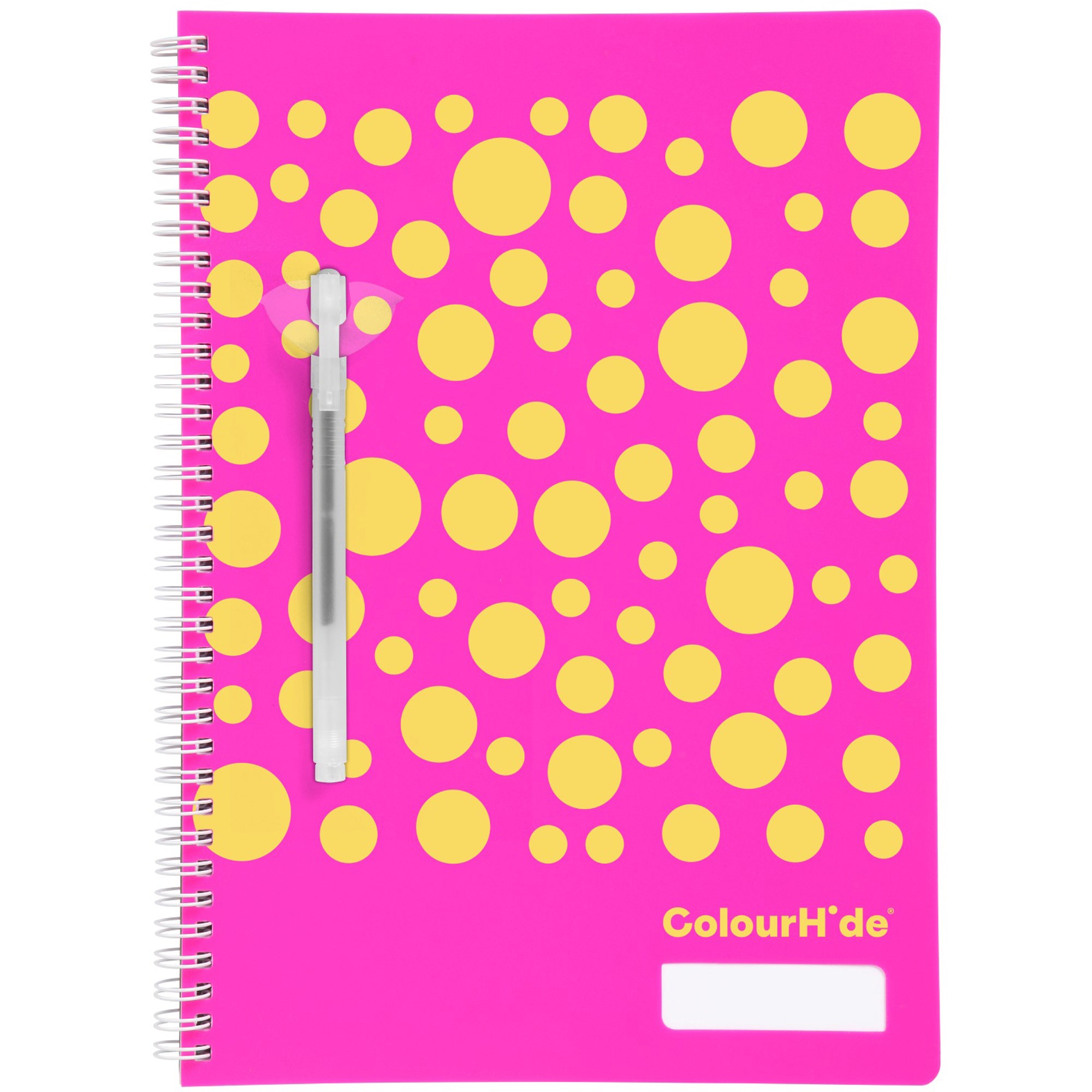 Say goodbye to boring sationery with Colourhide® notebooks. All notebooks have a vibrant and protective polypropylene cover, with easy rip out pages. The A4 range includes a pen holder on the cover, reusable ruler, and a 2-year calendar. The A5 note book includes a pen holder on the cover, reusable ruler, double-sided pocket, and a 2-year calendar. All Colourhide® notebooks are certified by the Forest Stewardship Council® (FSC® )