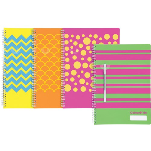 Say goodbye to boring sationery with Colourhide® notebooks. All notebooks have a vibrant and protective polypropylene cover, with easy rip out pages. The A4 range includes a pen holder on the cover, reusable ruler, and a 2-year calendar. The A5 note book includes a pen holder on the cover, reusable ruler, double-sided pocket, and a 2-year calendar. All Colourhide® notebooks are certified by the Forest Stewardship Council® (FSC® )