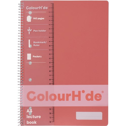 Colourhide Lecture Book A4 7 Hole punched Side Bound 140 Page Coral
