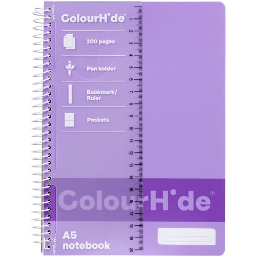 ColourHide Spiral Notebook A5 Side Bound 200 Page Purple
