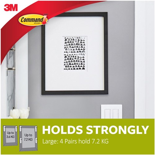 Holds strongly. Removes cleanly without surface damage. Commandâ„¢ Picture Hanging Strips are ideal for hanging pictures. Commandâ„¢ white & clear hooks are ideal for hanging a range of items including keys, calendars, utensils, decorations and more.