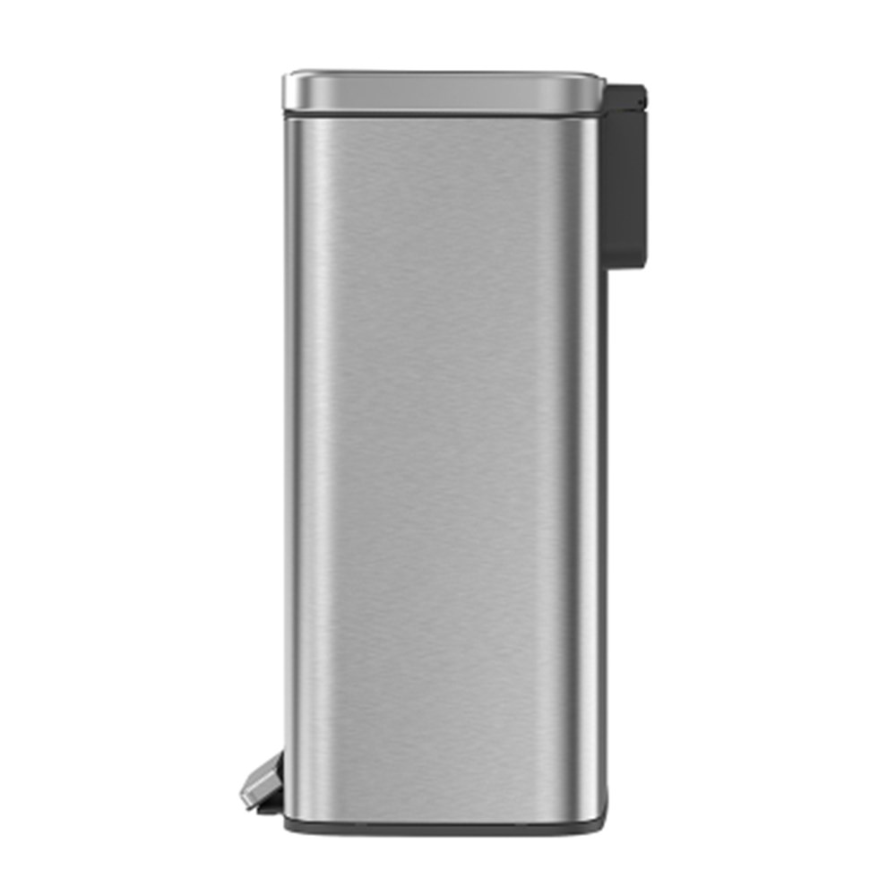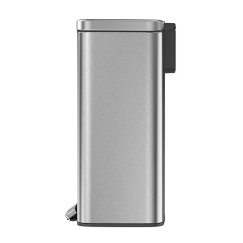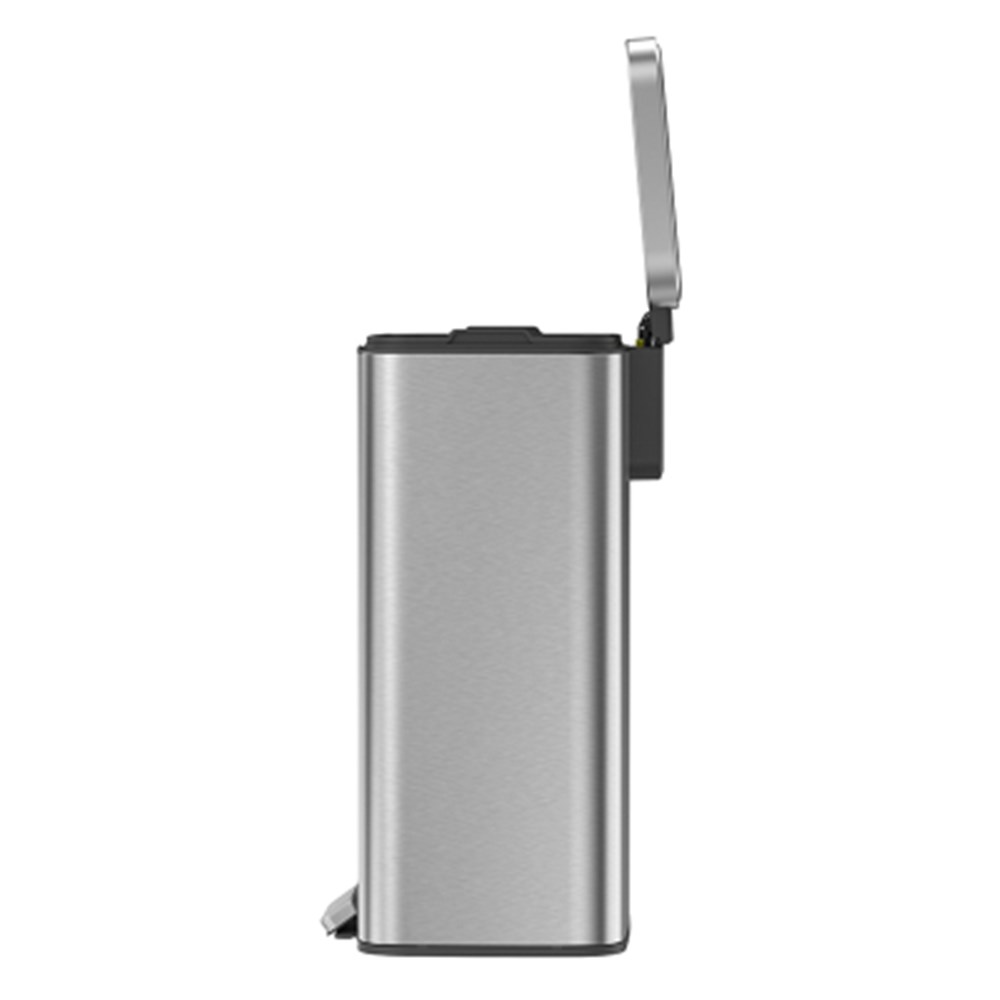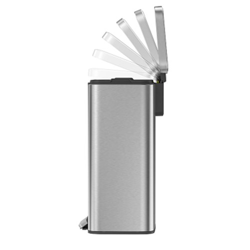 Fingerprint resistant brushed stainless steel finish. Soft close lid. Removable plastic liner. Lift the lid by hand to 90 degrees to engage the stay-open mechanism. 50 litres. Dimensions: 426L x 363W x 646mmH.