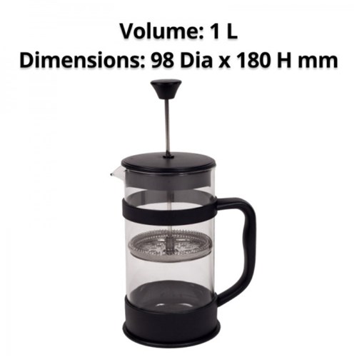 Features a heat resistant glass inner with a stylish black frame. Glass Size: 98D x 180mmH. Replacement glass available. Volume: 1 litre.