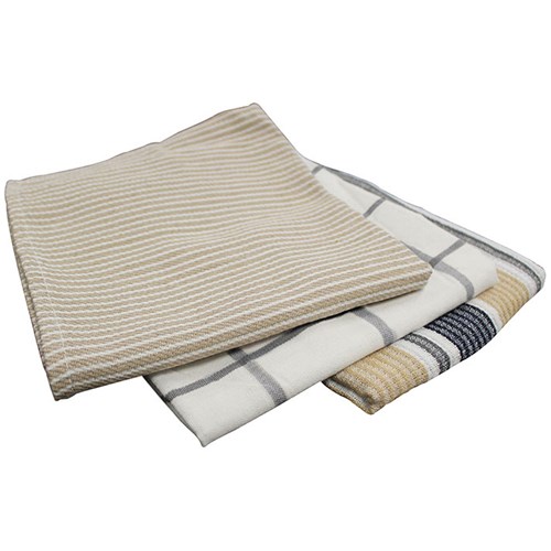 This set of 3 Connoisseur Tea Towels are ideal for all kitchen areas. They are 70 grams in weight each and are designed in modern, stylish grey, blue and tan patterns.